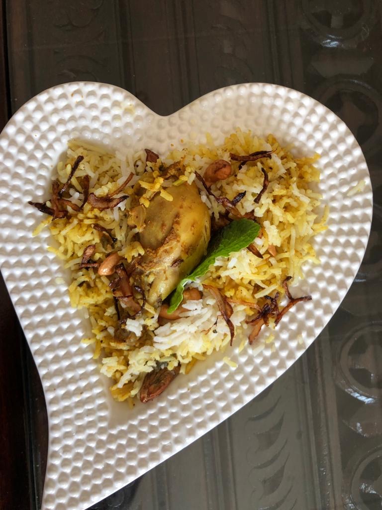 My earliest memory of a biryani is from childhood Eid days when Bapa’s friend Badruddin uncle sent big steel tiffin boxes of Eid ki daawat. I would strain on my toes to reach the kitchen platform to peep into the boxes as Bou unpacked the boxes….one after another… sevaiyyan, aromatic zarda, red mutton curry, crispy chicken fry and the hero of all dishes… biryani. It was light brown in colour.. grains of rice cooked to perfection with succulent mutton pieces… drizzled with birista( fried onions) and nuts. In those days, biryani was hardly on any restaurant’s menu in Jamshedpur.